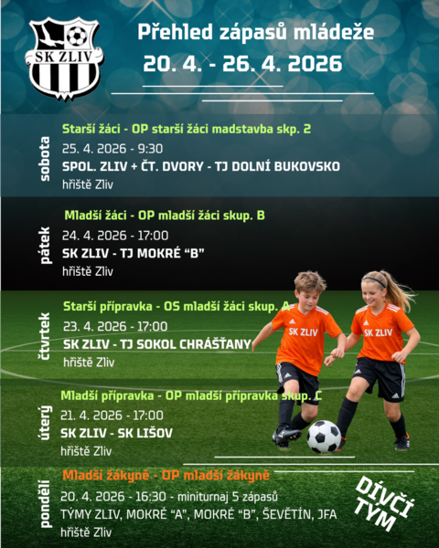 Přehled zápasů mládeže SK Zliv 6. 4. – 12. 4. 2026
